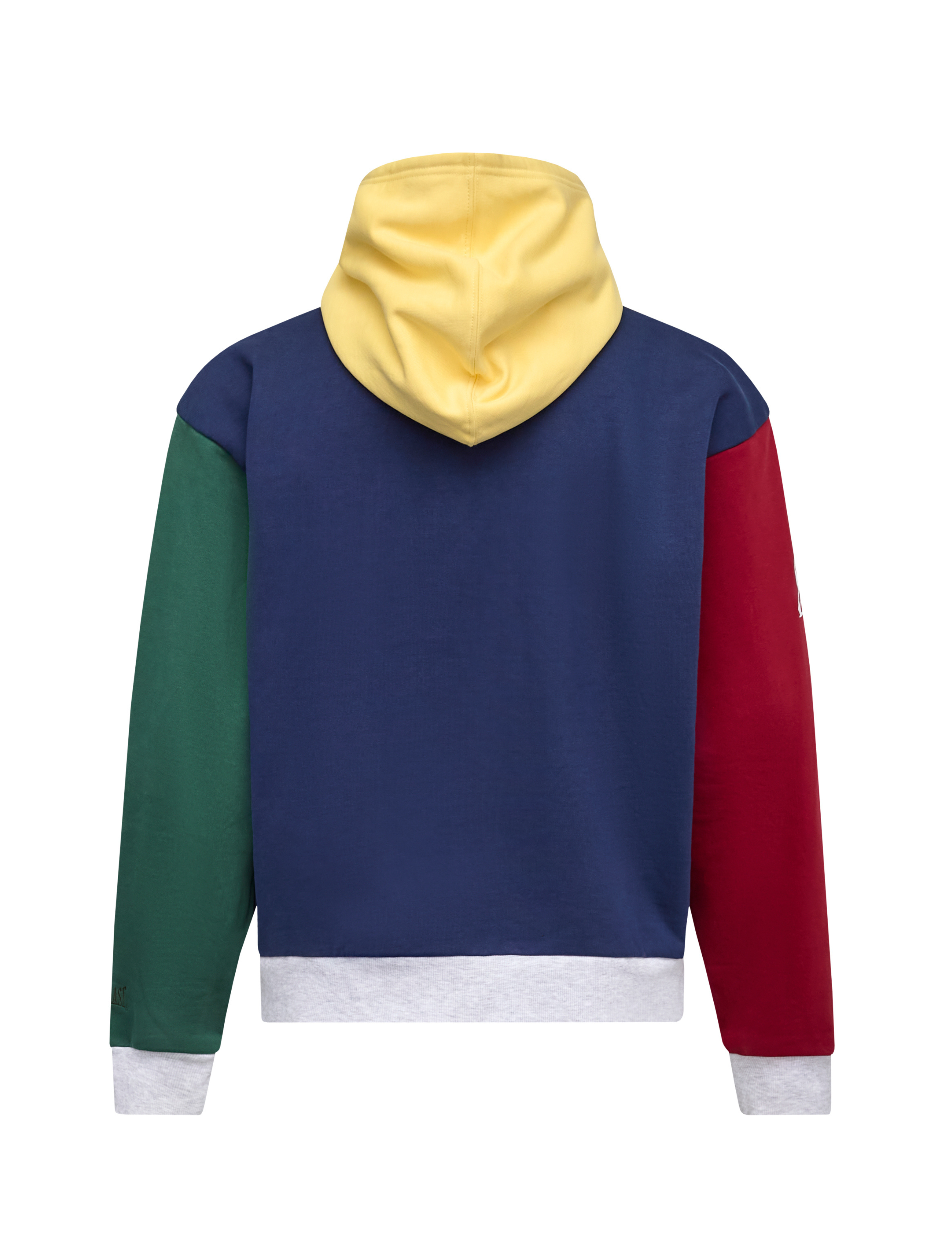 • The Twister Hoodie is a part og of the Twister set. The design is a heavy cotton jersey hoodie with a classic fit. It comes in an iconic color combination: black body, red and green sleeves, and yellow hood. Grey details throughout. Further details are front pocket and embroidered E-logo on chest. Soft, premium design made for an elevated street-relaxed look.