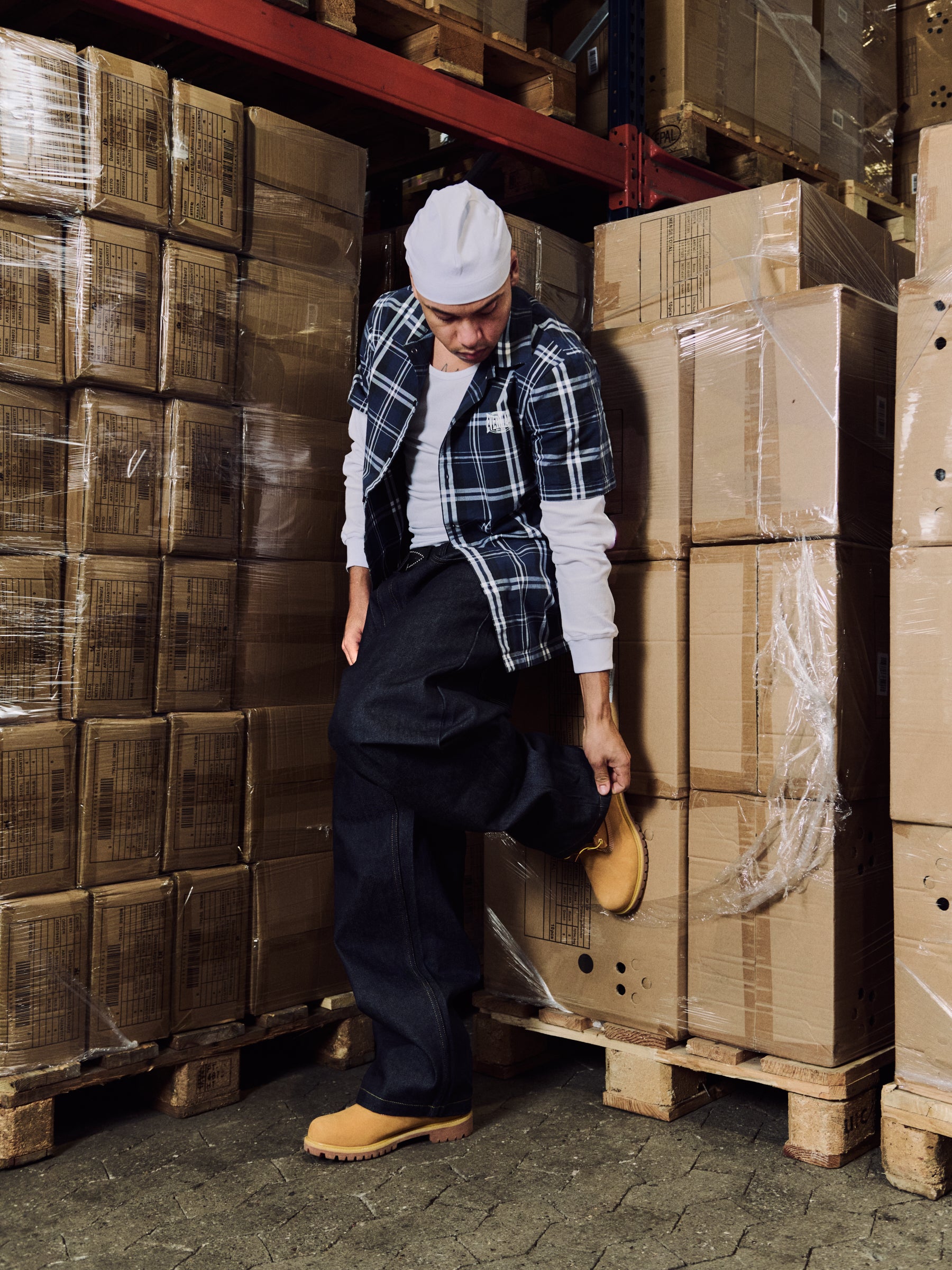 The “Rebel Shirt” is a long sleeve tee in jersey, featuring checkered shirt with solid white sleeves underneath. The design has a clean silhouette and a relaxed fit for everyday wear.