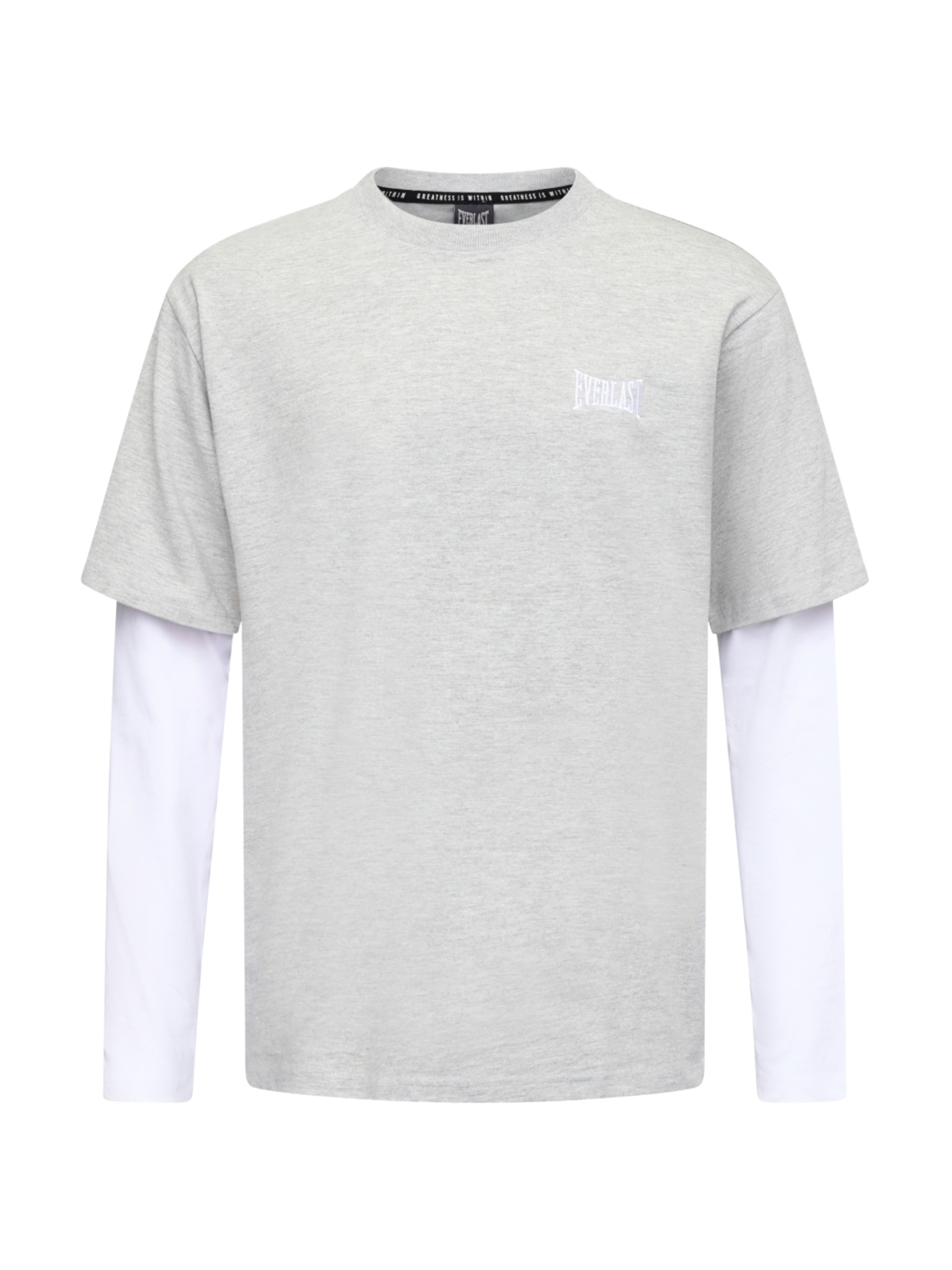 Klassisk T-shirt med layered look og et rent, sporty udtryk. Enkelt frontlogo og stort Everlast-tryk på ryggen. Inspireret af sport og street – lavet til hverdagsbrug.