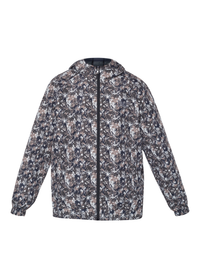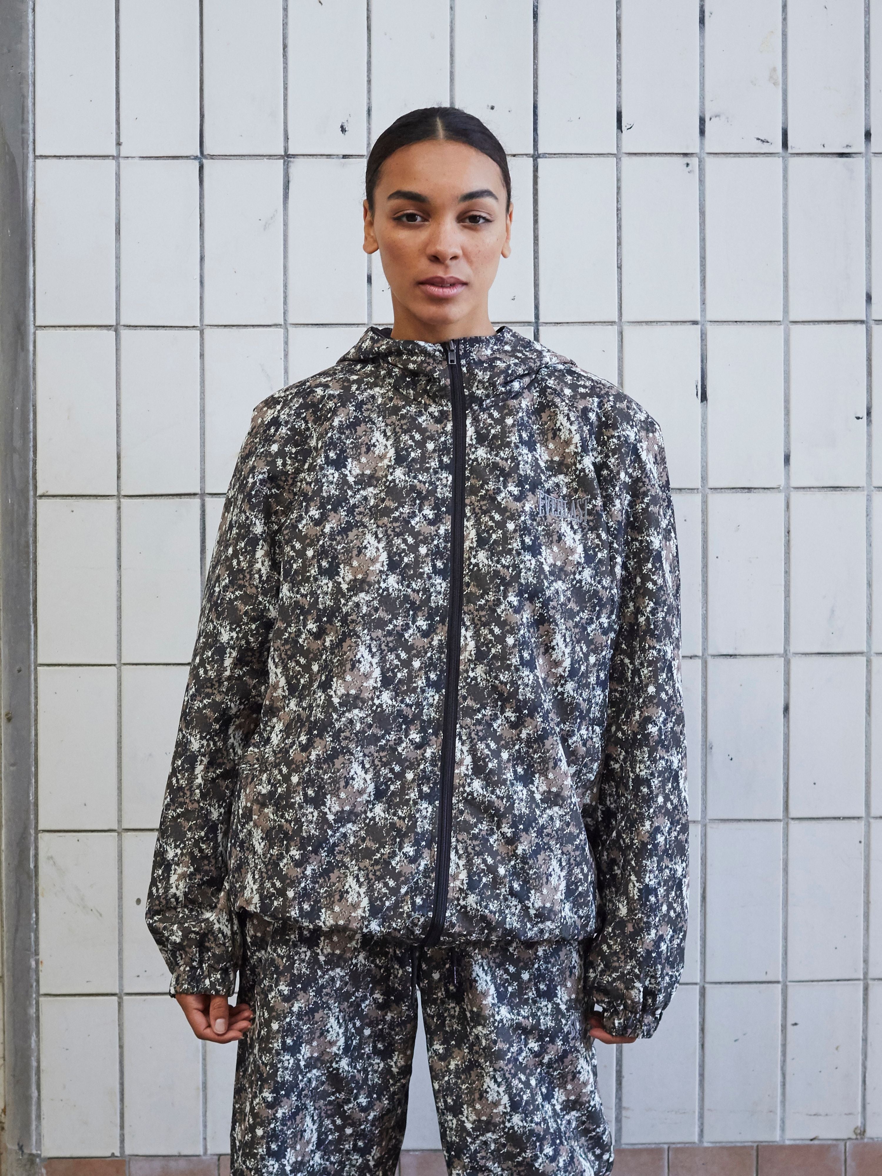 Let jakke med et markant all-over print og et sporty street-udtryk. Designet til hverdagsbrug med hætte og lynlås. Let kvalitet, der giver bevægelse og et teknisk look.